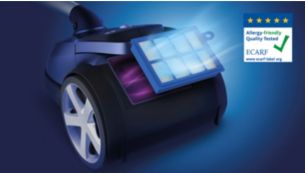 Our clean-air filter system captures 99.9% of fine dust – including pollen, pet hair and dust mites – for allergy sufferers and anyone demanding a higher level of hygiene. Certified allergy friendly by ECARF.